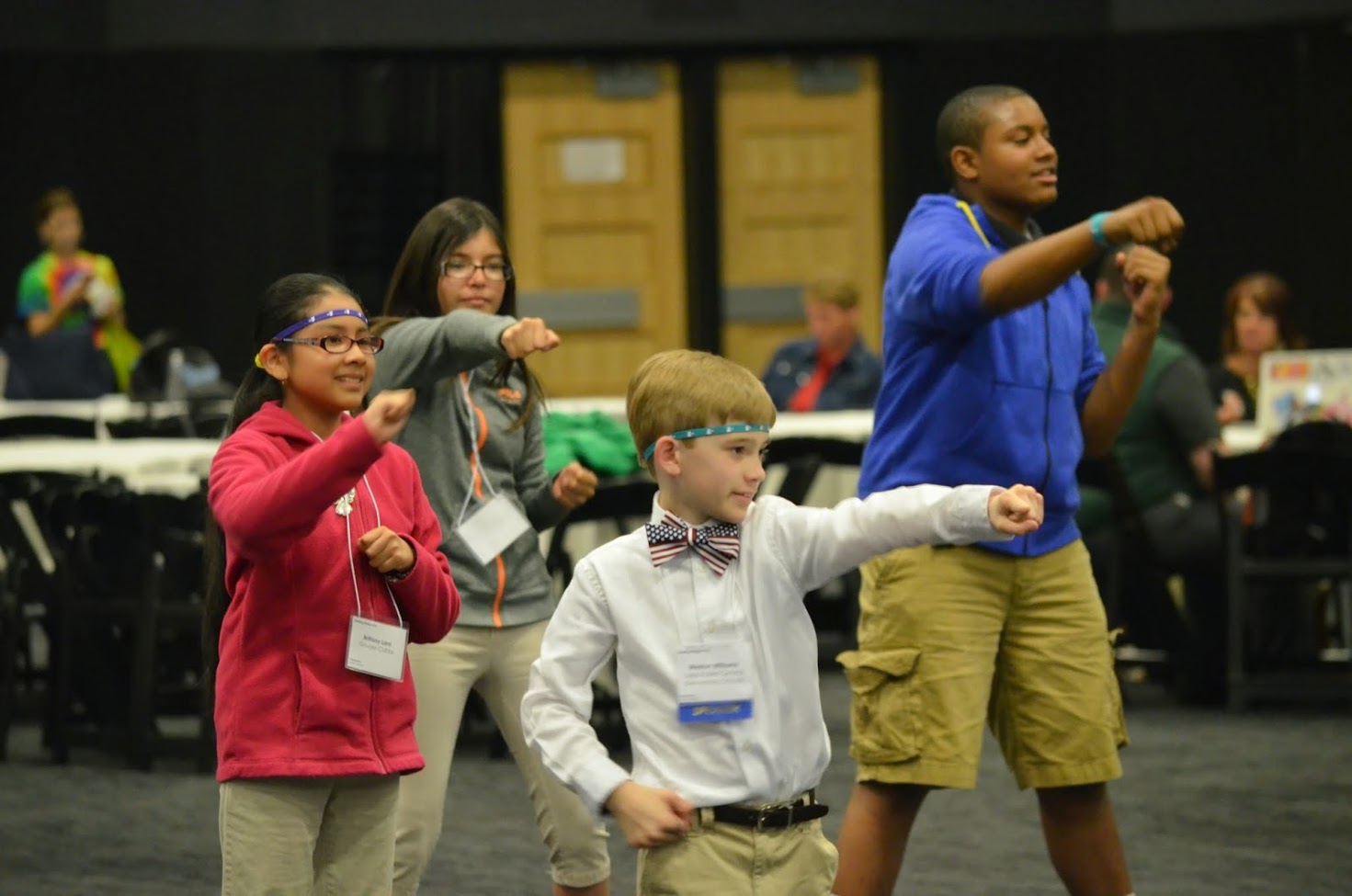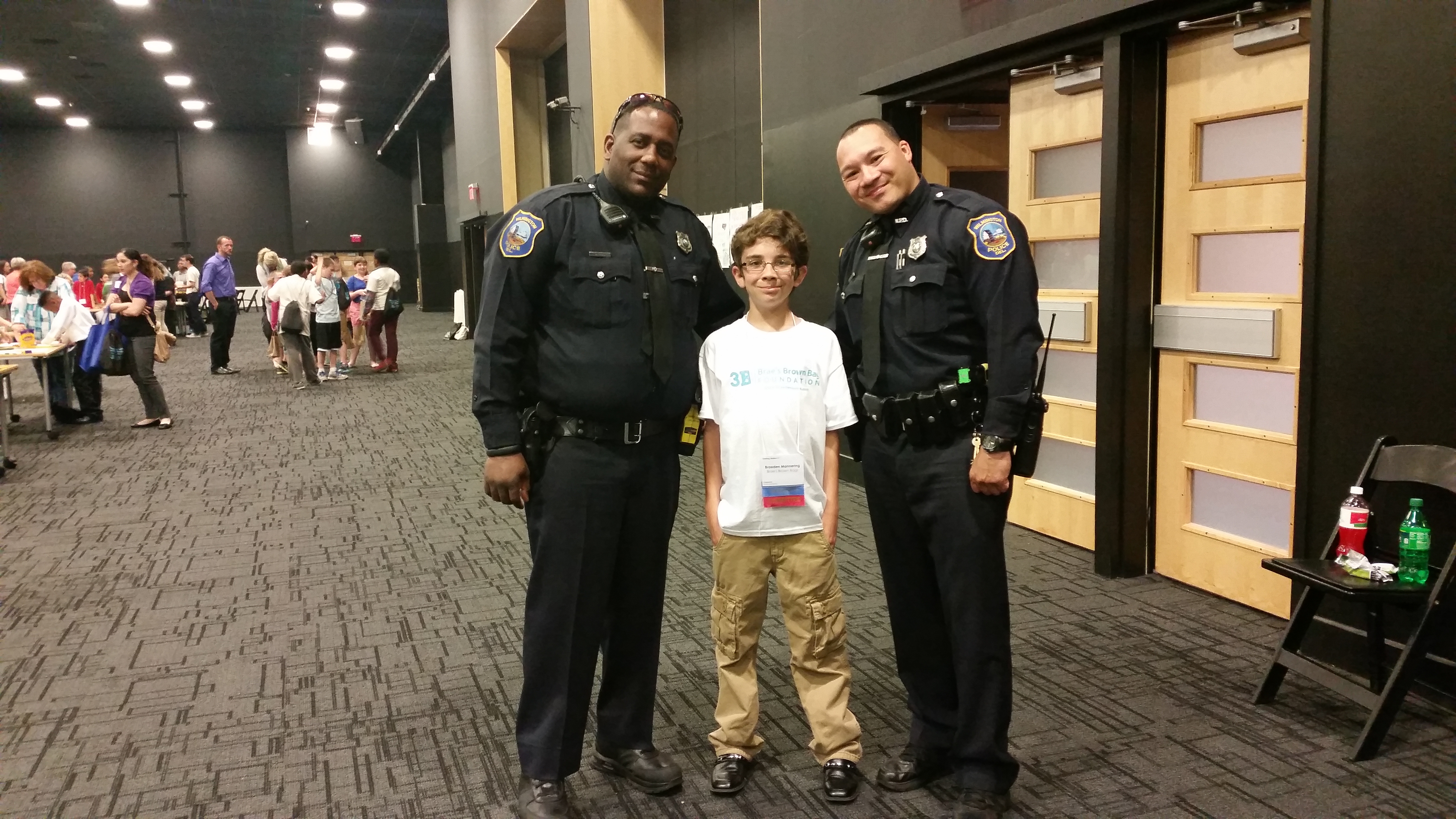 Most of the day was spent in a great big room called the Wilmington Room and this was the “Kid Track” of the conference. We had eight different activities which groups of students rotated through and participated in together. Most of the activities required a group effort. The Bear-Glasgow YMCA was there with their “Born to Move” program for youth fitness. The exercises were super fun! Even two Wilmington Police Officers joined in on the fun!