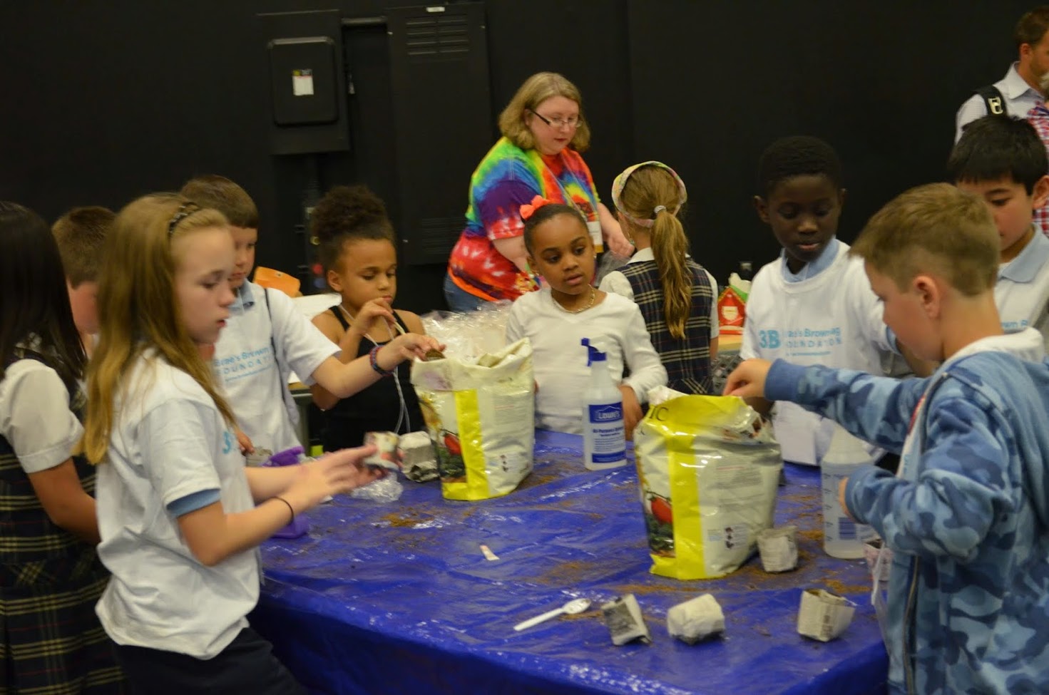 The Delaware Cooperative Extension Master Gardener’s taught kids about planting their own food, every kid left with a plant. Tanya Steel and Haile Thomas cooked healthy snacks for the kids at a healthy eating demo and taught them about how important it is for everyone to be able to eat healthy. My Gram and Pop took care of the 3B bag packing table and handed out shirts. My Grandmom Stephan and my friend Suzy from North DelaWHERE Happening worked with a Food Bank volunteer on the Money Pit activity.
